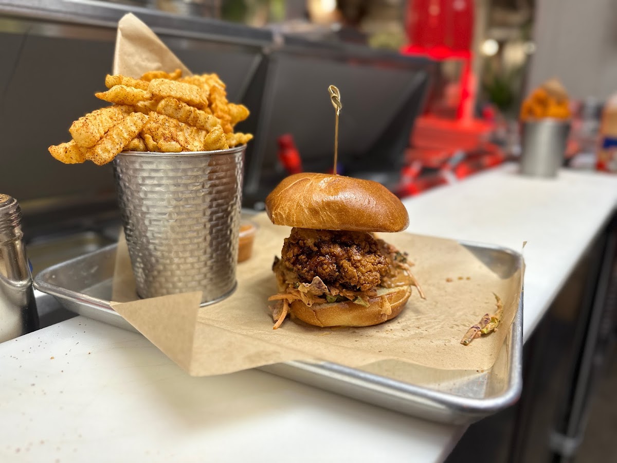One standout dish is the signature hot chicken sandwich. The tender, crispy chicken is drenched in a flavorful, spicy sauce that manages to balance the heat with a touch of sweetness. Pair it with a side of perfectly seasoned fries, and you’ve got a meal that keeps you coming back for more. The slaw that accompanies the sandwich adds a refreshing crunch, cutting through the richness of the chicken while complementing the spices perfectly.