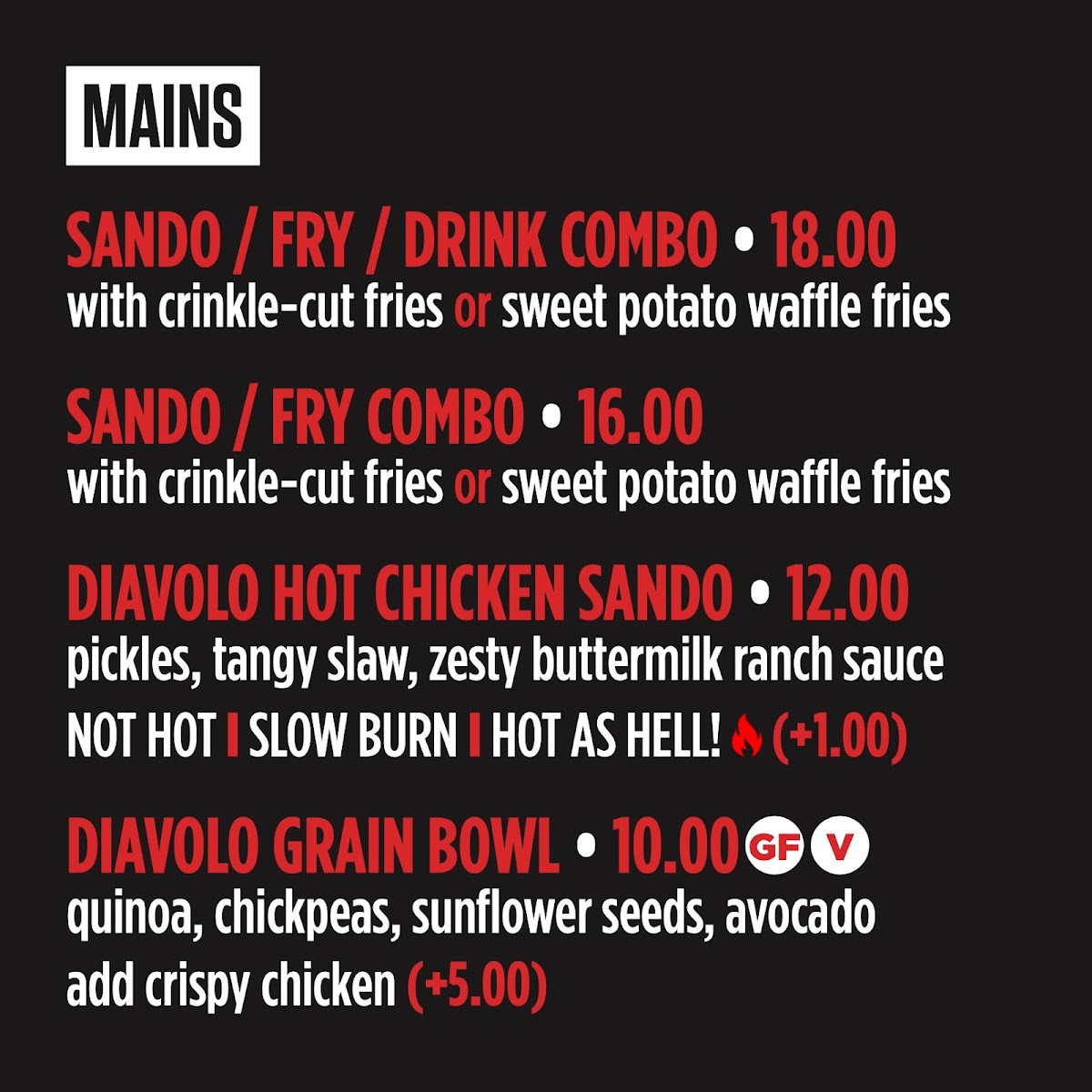 If you're craving bold, spicy flavors, the Diavolo Pueblo Hot Chicken Menu is your go-to spot. Located at 400 S Union Ave in Pueblo, CO, this spot brings heat to your taste buds with its signature hot chicken dishes. From crispy, golden fried chicken drenched in fiery sauces to perfectly paired sides, every bite is an adventure for your senses. The menu offers something for everyone, whether you're a fan of mild spice or looking to turn up the heat. With each dish crafted to deliver maximum flavor, you'll be coming back for more. Whether you're grabbing a quick meal or indulging in a fiery feast, Diavolo Pueblo Hot Chicken never disappoints.